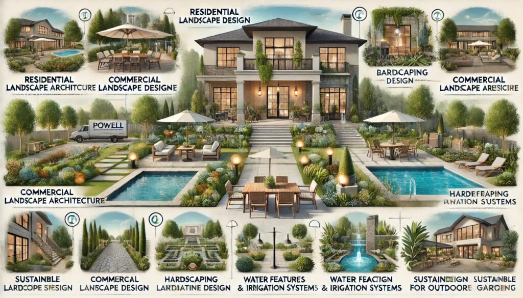 - Water Features and Irrigation Systems – Incorporate fountains, ponds, or waterfalls to bring a tranquil touch to your landscape.